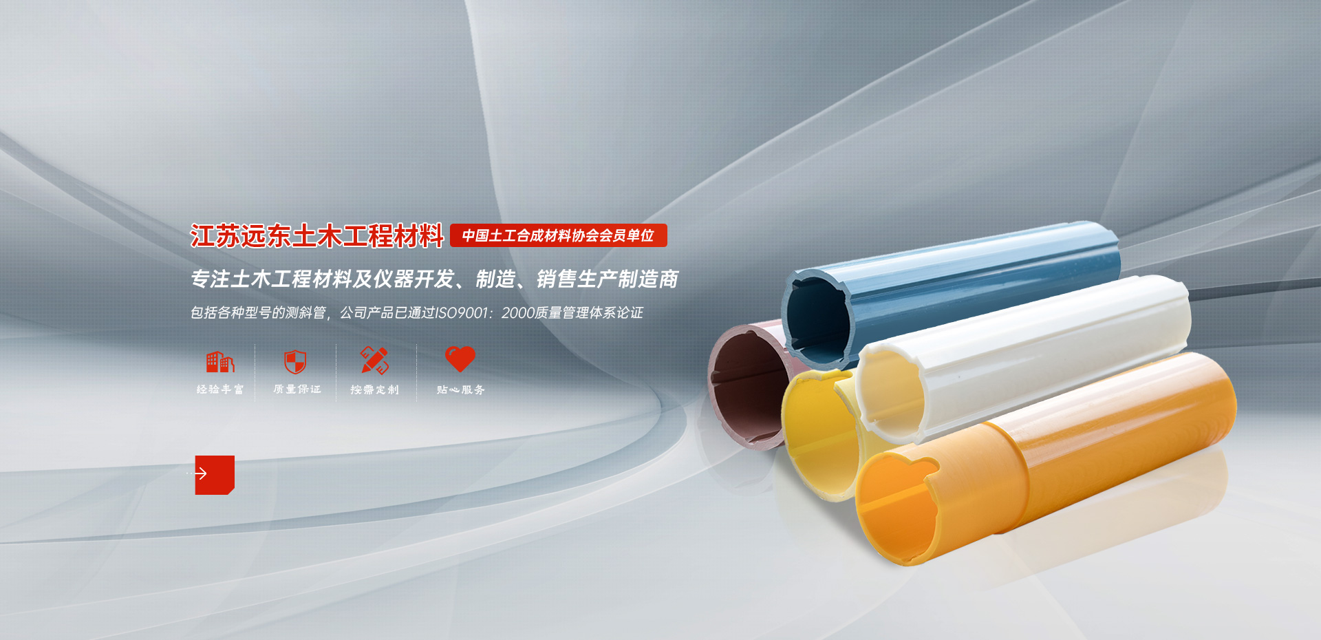 江蘇遠(yuǎn)東土木工程材料有限公司位于經(jīng)濟(jì)發(fā)達(dá)的江蘇省常州市金壇區(qū),地處金壇市東南,是從事土木工程材料及儀器開(kāi)發(fā)、制造、銷(xiāo)售生產(chǎn)制造商,同時(shí)也是中國(guó)土工合成材料協(xié)會(huì)會(huì)員單位。 目前,我公司的主要產(chǎn)品為土工材料及相關(guān)儀器:包括各種型號(hào)的測(cè)斜管、注漿管、沉降管、水位管以及土工膜、塑料盲溝材、軟式透水管、土工格柵等多種土工材料;并為用戶(hù)配套振弦式傳感器及相關(guān)儀器,包括錨索測(cè)力計(jì)、鋼筋測(cè)力計(jì)、土壓力計(jì)、孔隙水壓力計(jì)、混凝土應(yīng)力計(jì)、應(yīng)變計(jì)、位移計(jì)、水位計(jì)、測(cè)縫計(jì)、傾斜儀,智能測(cè)頻儀等多個(gè)品種。多年來(lái),我公司緊扣市場(chǎng)脈搏,不斷地推陳出新,積累了豐富的產(chǎn)品開(kāi)發(fā)運(yùn)作經(jīng)驗(yàn)。 我們的產(chǎn)品已經(jīng)在三峽、龍灘、紫平鋪、江埡、昌馬、大亞灣核電站、連云港核電站、上海國(guó)際機(jī)場(chǎng)、廣州地鐵、楊浦大橋、錢(qián)江大橋、滬寧高速、杭金瞿高速、上海金貿(mào)大廈、淮南礦務(wù)局等多個(gè)國(guó)家工程中成功應(yīng)用,深受專(zhuān)家和廣大用戶(hù)的好評(píng)和肯定,被國(guó)內(nèi)多家相關(guān)科研院所、高等院校推薦使用,在業(yè)界有一定的知名度。 我們一貫堅(jiān)持以市場(chǎng)為導(dǎo)向,以技術(shù)、產(chǎn)品、服務(wù)為依托,始終以客戶(hù)的需求作為企業(yè)的考慮以客戶(hù)的滿(mǎn)意作為企業(yè)的追求,秉承“誠(chéng)信為本,質(zhì)量為本,技術(shù)先進(jìn),服務(wù)優(yōu)先”的經(jīng)營(yíng)理念,我公司始終致力于成為國(guó)內(nèi)巖土工程材料監(jiān)測(cè)儀器行業(yè)具有競(jìng)爭(zhēng)力的核心企業(yè)。我公司全體員工熱忱歡迎廣大客戶(hù)和各界同仁指導(dǎo)合作,我們將與推您攜手同進(jìn),共創(chuàng)輝煌!史經(jīng)理24小時(shí)咨詢(xún)熱線(xiàn):13901491018(微信同號(hào))。
